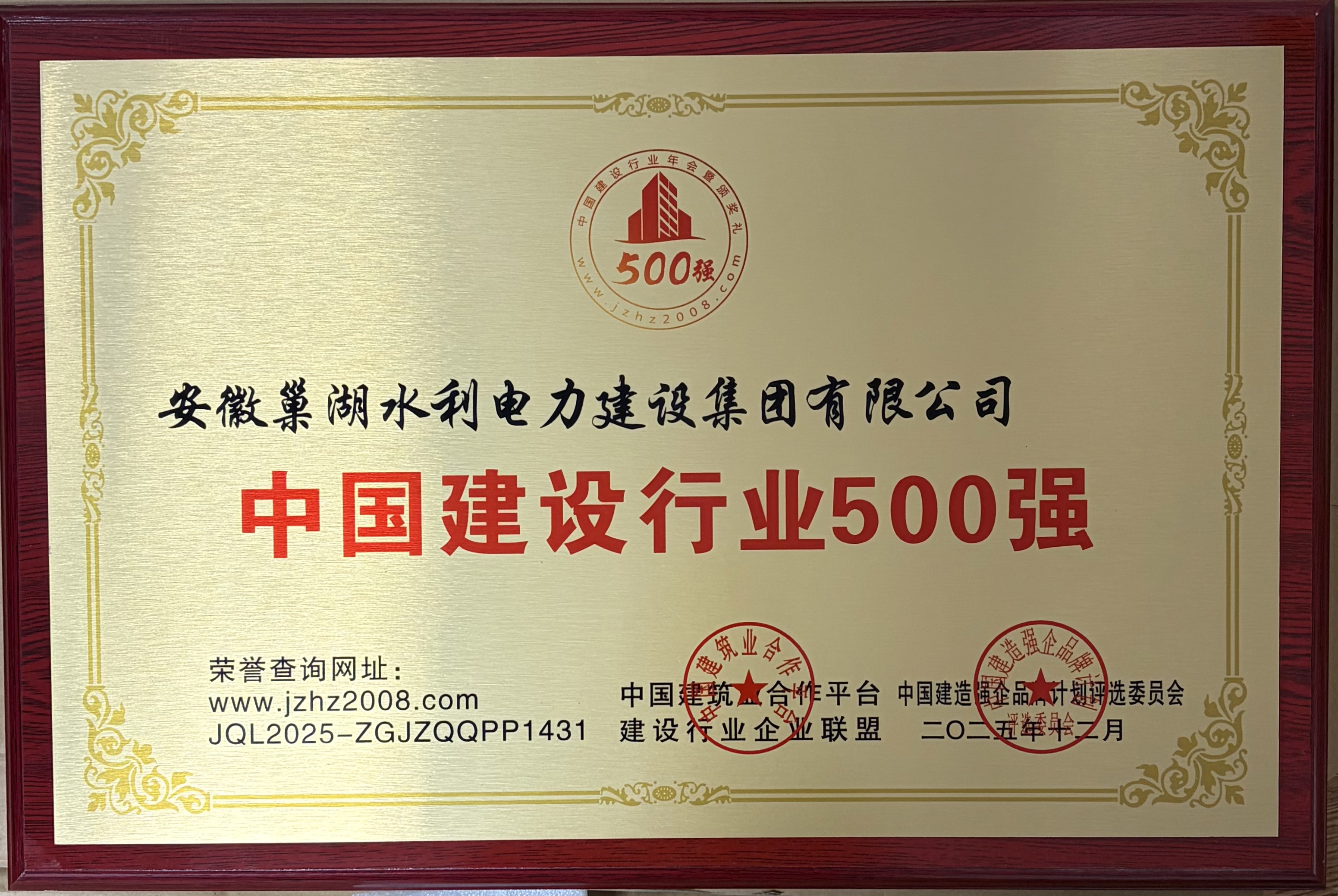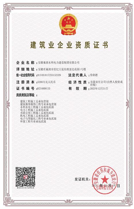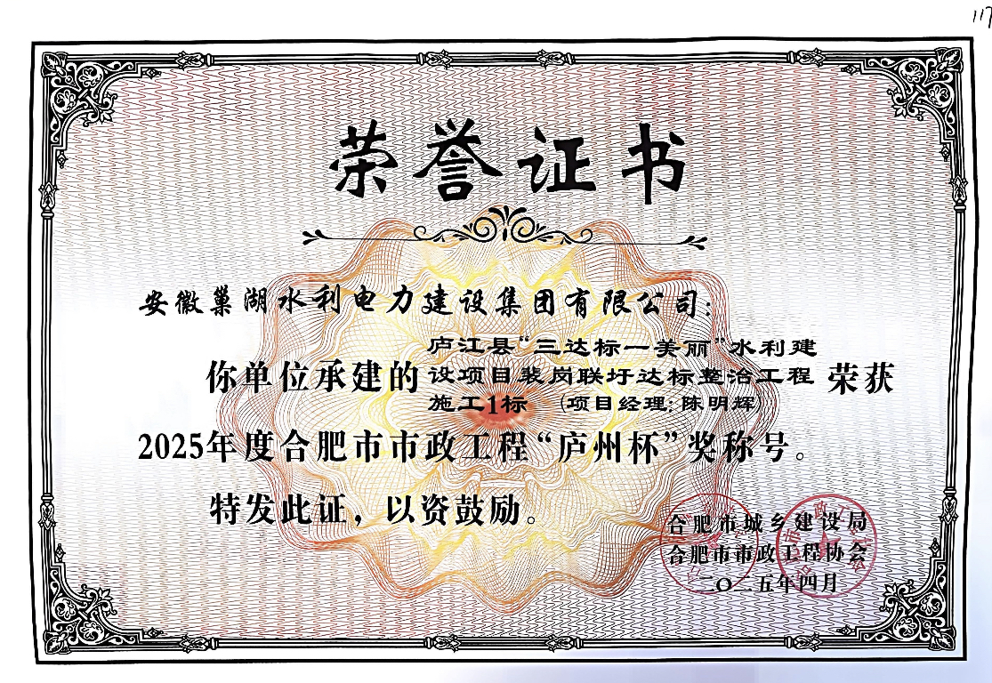 - 2024-03-28中共巢湖市組委會表彰安徽巢湖水利電力建設集團有限公司黨支部為五星級黨組織稱號