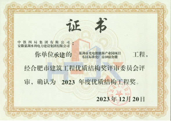 優(yōu)質(zhì)結(jié)構(gòu)工程獎證書