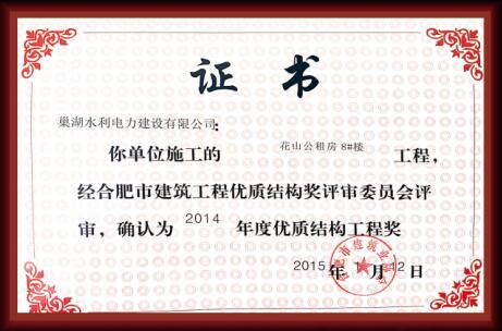 花山公租房8#樓工程榮獲“優質結構工程獎”